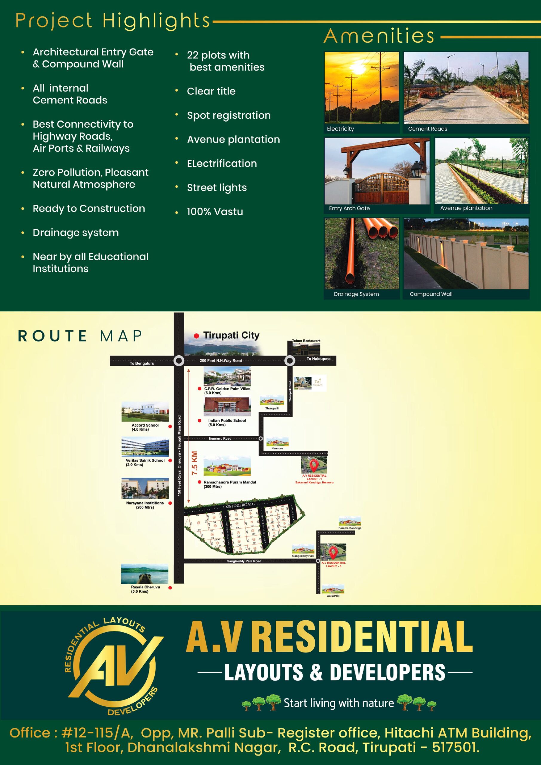 AV Residential Layout 2 is more than just a residential space—it’s a smart investment opportunity in Tirupati’s real estate growth story. With just a limited number of plots available and rising demand in Chittoor and Tirupati, this project offers top-tier returns on a secure asset. Don’t miss out—book your plot today and own your share of one of the top and best layouts in Tirupati and Chittoor.